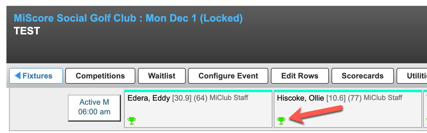 To apply a No Score Approved status to a player's scorecard. First navigate to the timesheet booking and click the trophy icon on the cell.