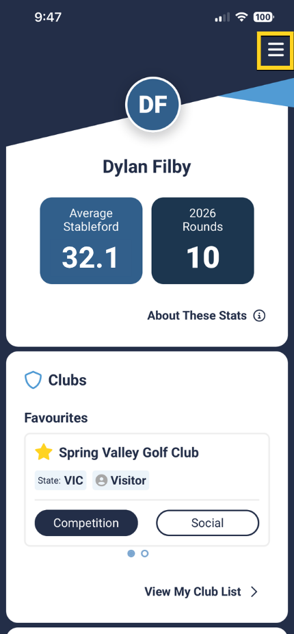 1. From the user dashboard, tap the three lines in the top right corner to access the 'Menu'.